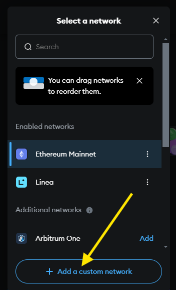 1. Open MetaMask and click on the network dropdown (it's usually set on “Ethereum Mainnet”).